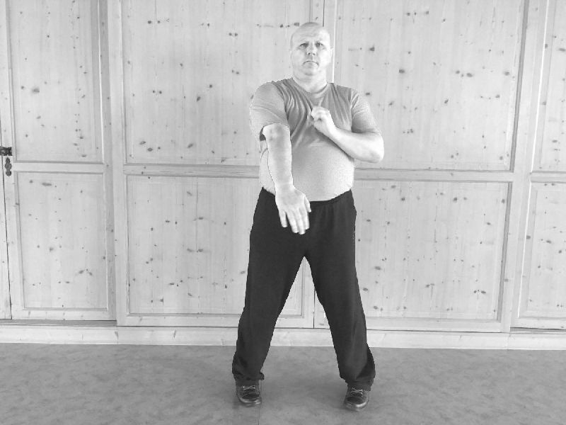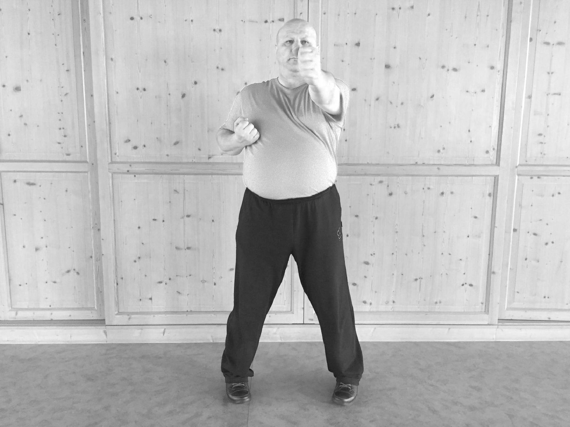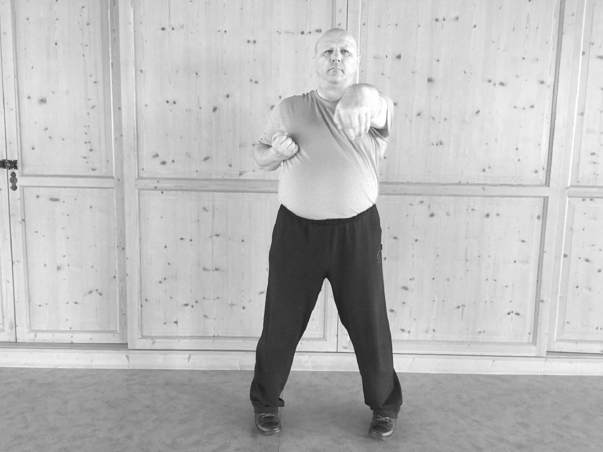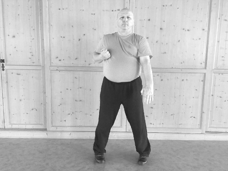 Wir beginnen die zweite WuMei-Form mit dem Wechsel. Dann folgt der Stoß und das Nachsetzen.