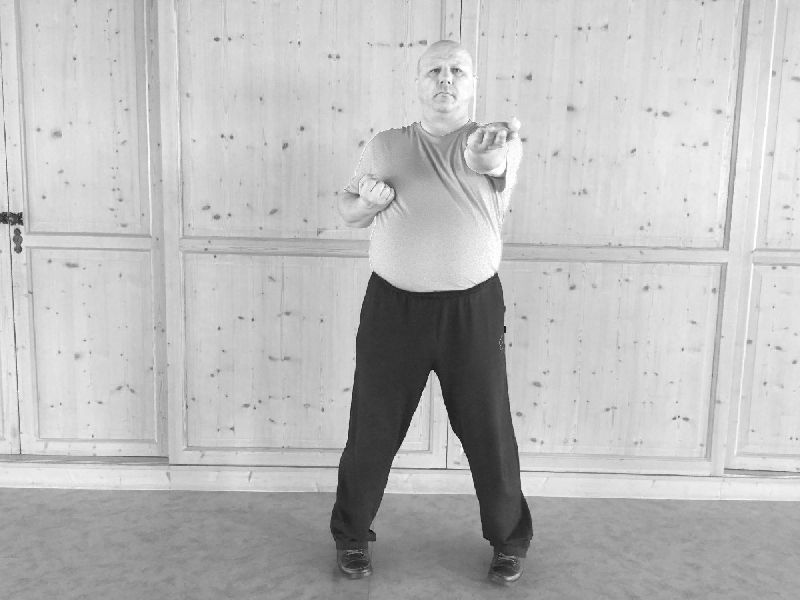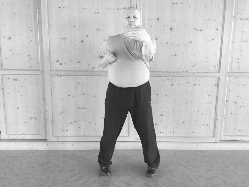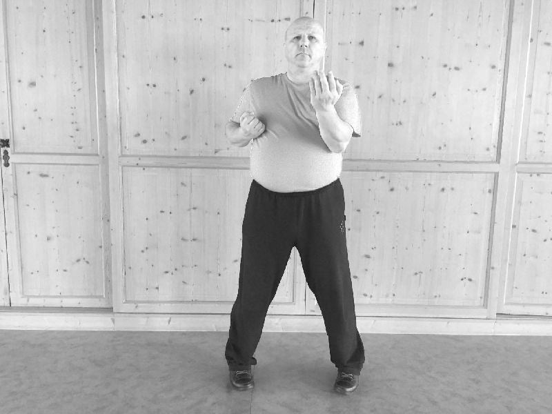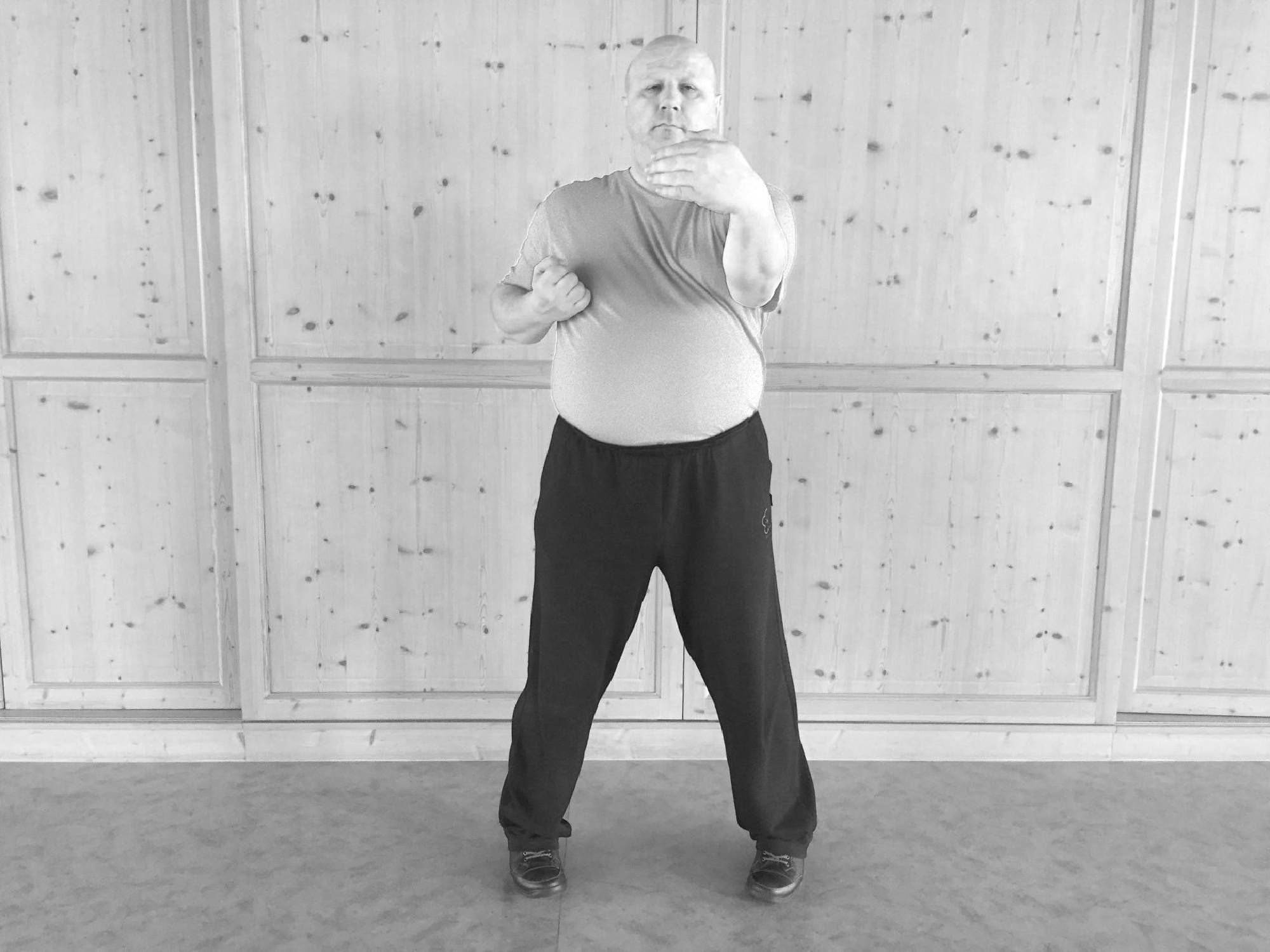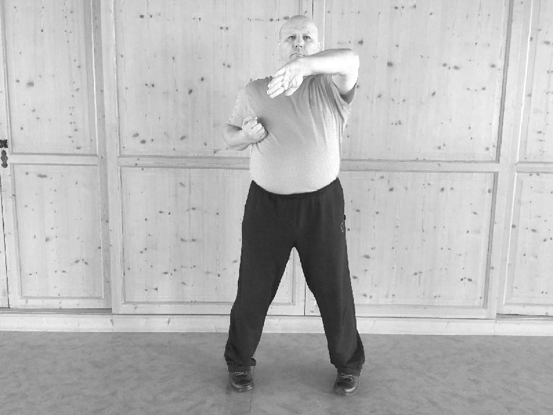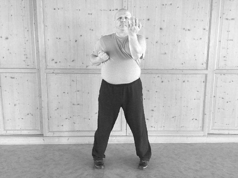 Wir beginnen die zweite WuMei-Form mit dem Wechsel. Dann folgt der Stoß und das Nachsetzen.